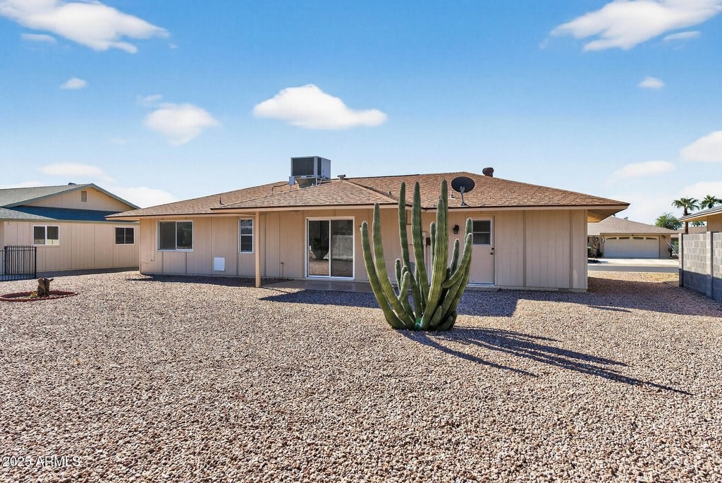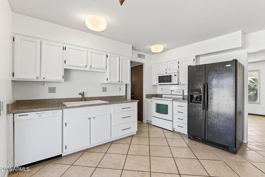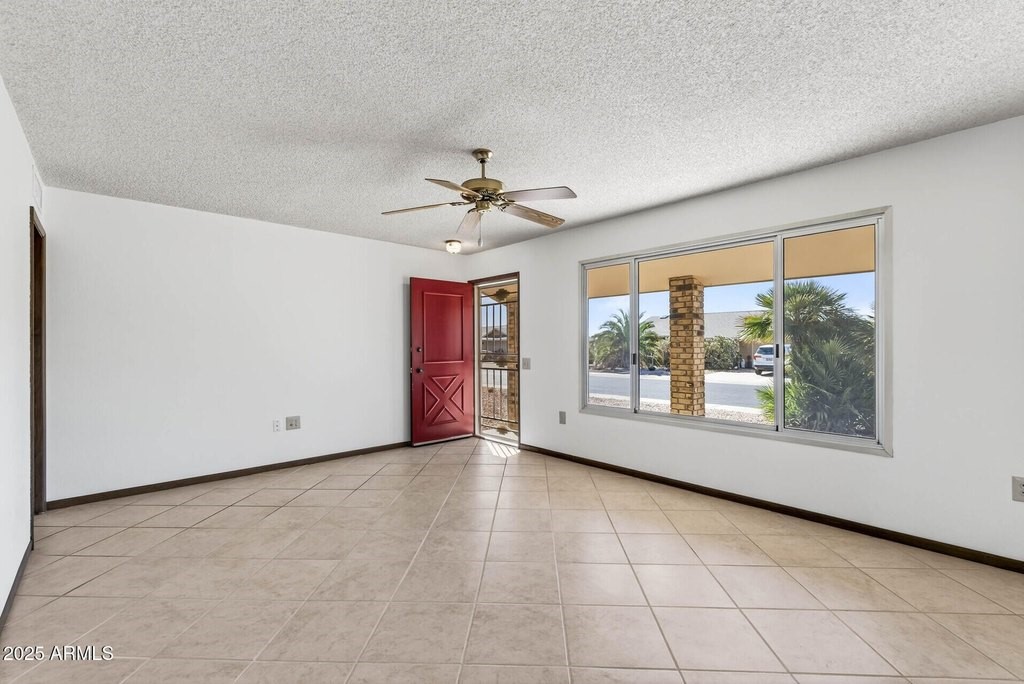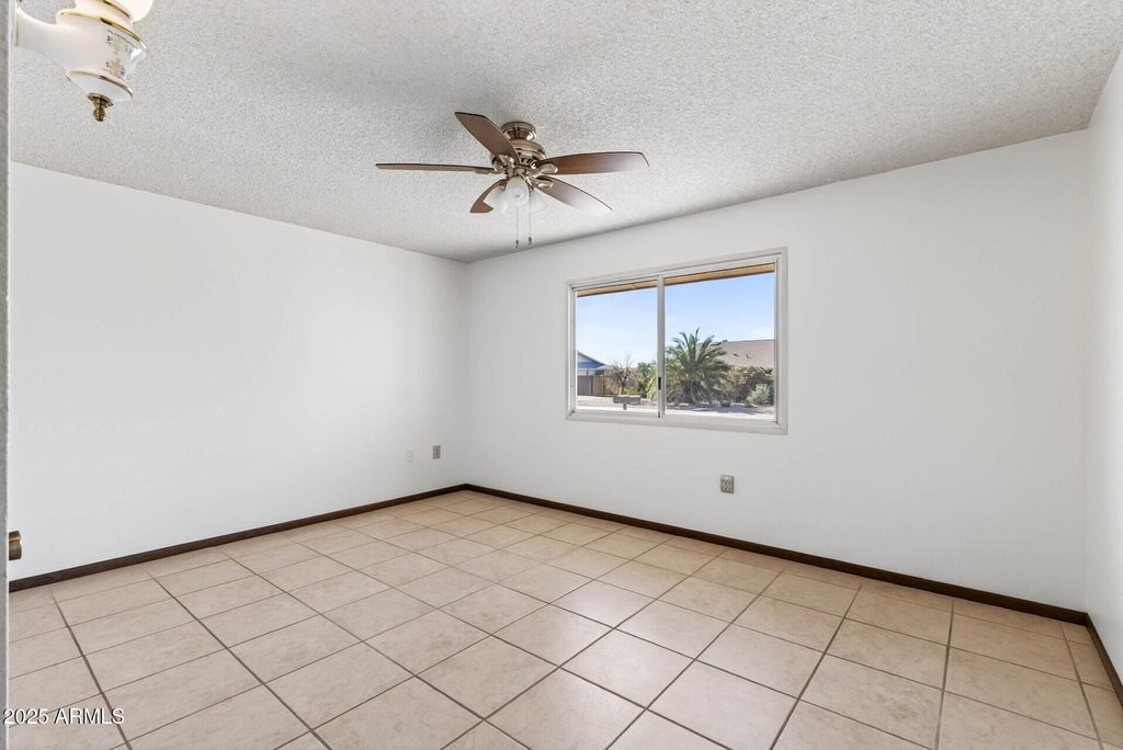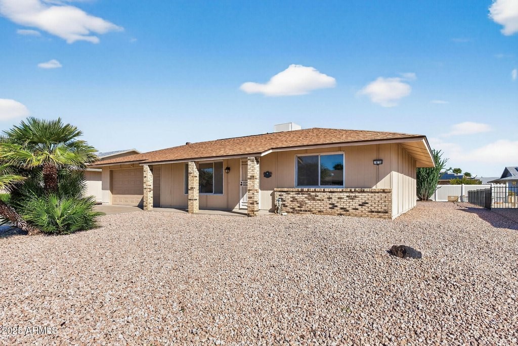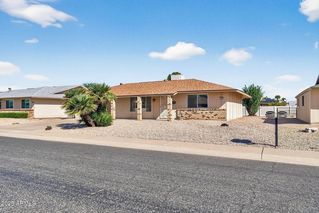 Quail Run Charmer! N/S facing! Roof Replaced 10/27/25! Entire interior was just painted the perfect spa white. The home has such a peaceful calm feeling. Large neutral tiles are in every room giving the home a good look and flow. The bathroom has been remodeled with a walk in shower and a beautiful corian vanity. Both bedrooms have large closets. There are ceiling fans in all living spaces. Lets talk about the kitchen! It has beautiful counter tops w/white cupboards. You will want to bake a chicken, or call for a pizza! There is room for a cozy kitchen table! The kitchen is so cheerful and bright! The lot is oversized at 8721sq ft. The back yard is fresh & clear requiring minimum upkeep. Wait until you see the exceptional Ocotillo! This home is a must see It's both Charming & Inviting!!
