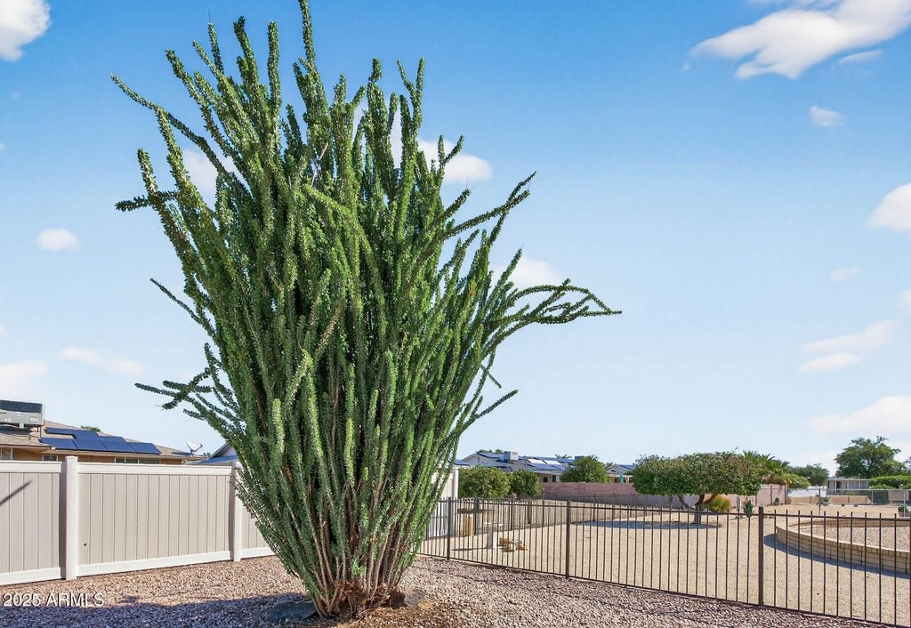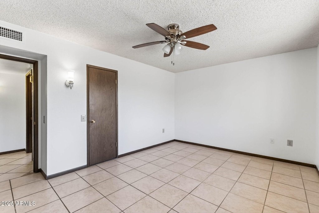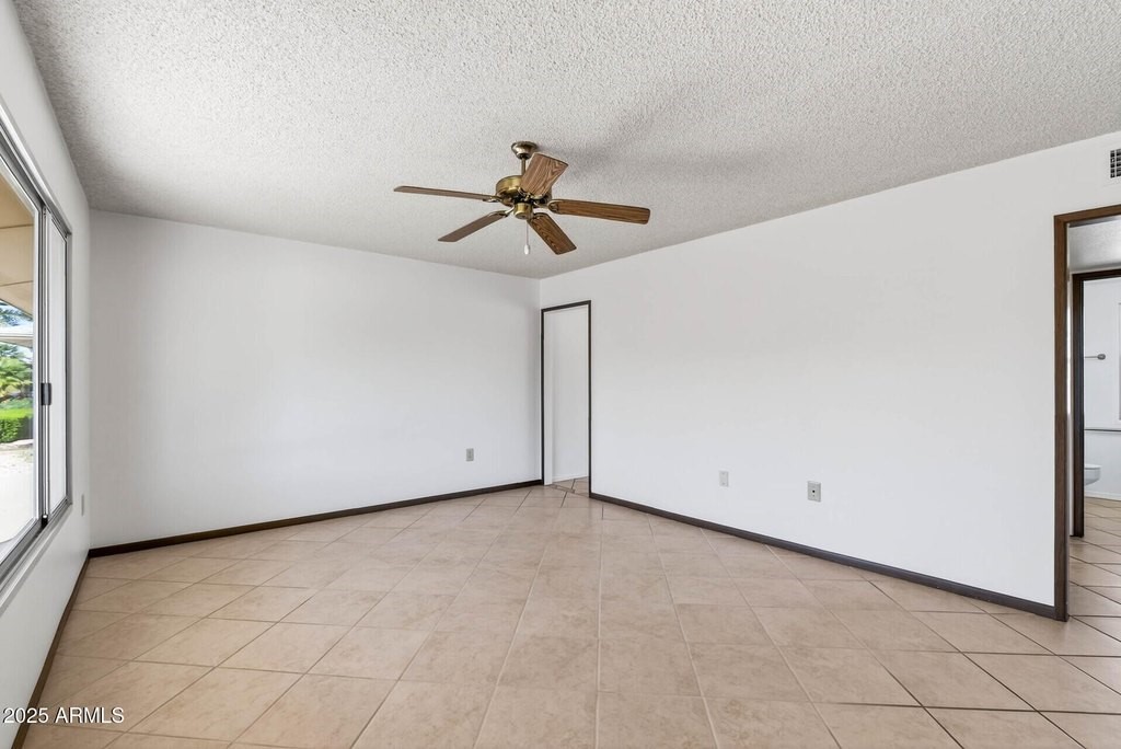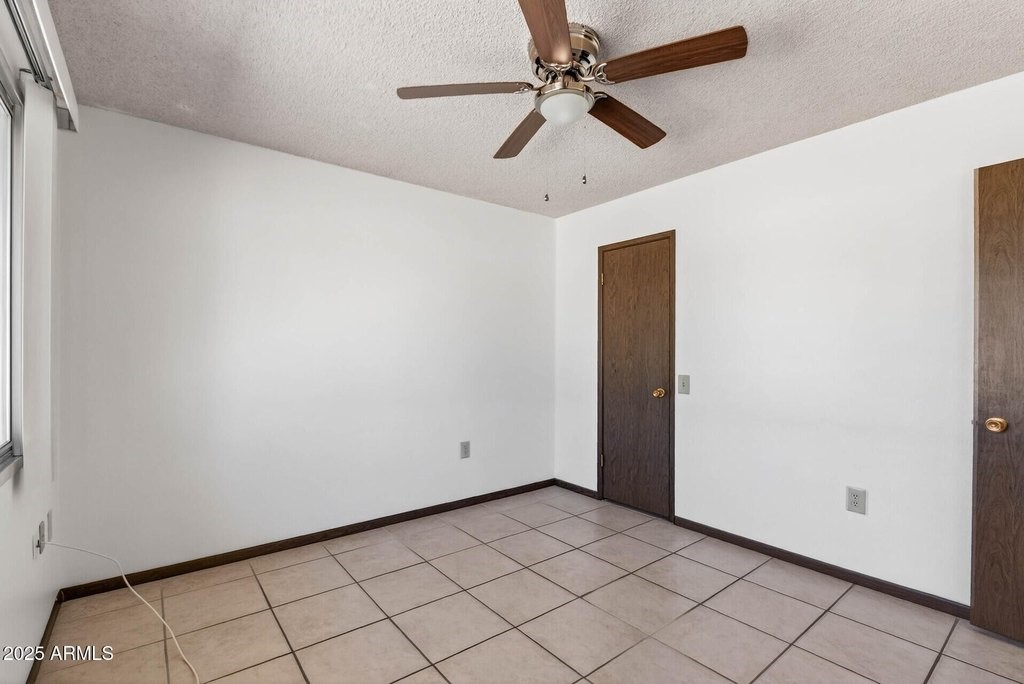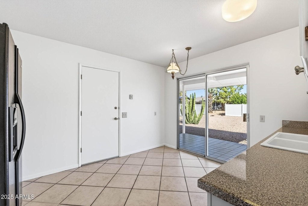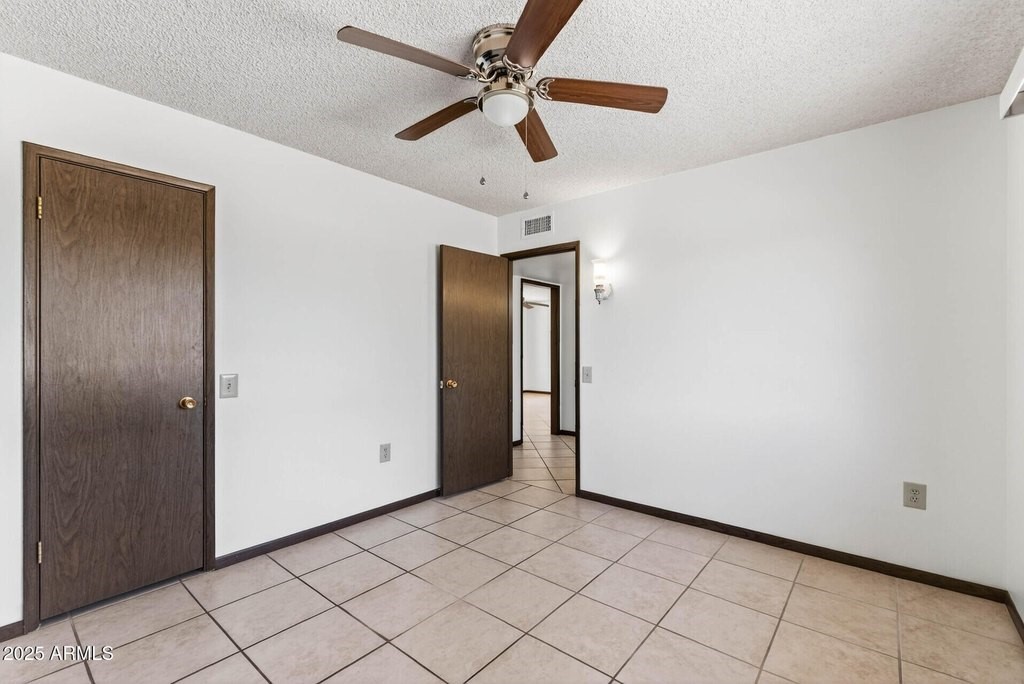 Quail Run Charmer! N/S facing! Roof Replaced 10/27/25! Entire interior was just painted the perfect spa white. The home has such a peaceful calm feeling. Large neutral tiles are in every room giving the home a good look and flow. The bathroom has been remodeled with a walk in shower and a beautiful corian vanity. Both bedrooms have large closets. There are ceiling fans in all living spaces. Lets talk about the kitchen! It has beautiful counter tops w/white cupboards. You will want to bake a chicken, or call for a pizza! There is room for a cozy kitchen table! The kitchen is so cheerful and bright! The lot is oversized at 8721sq ft. The back yard is fresh & clear requiring minimum upkeep. Wait until you see the exceptional Ocotillo! This home is a must see It's both Charming & Inviting!!